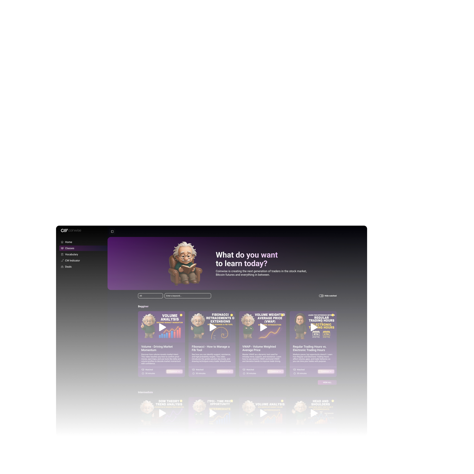 The Coinwise experience at a glance. Clear paths, real-time practice, community, rewards and docs. All in one flow.